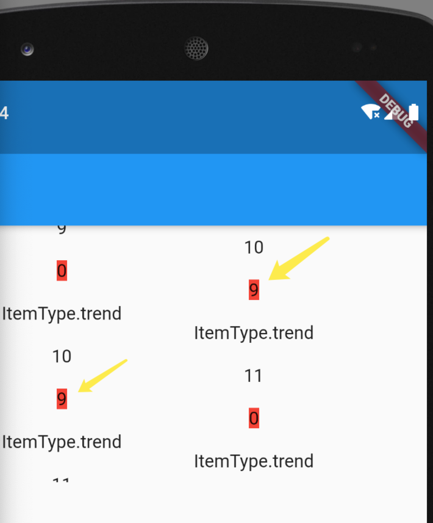- list refresh(no implement in sample) or loadMore would refresh items. I click right item (id=10) to 5, and scroll left to 10. Then, right item(id 10) to 0