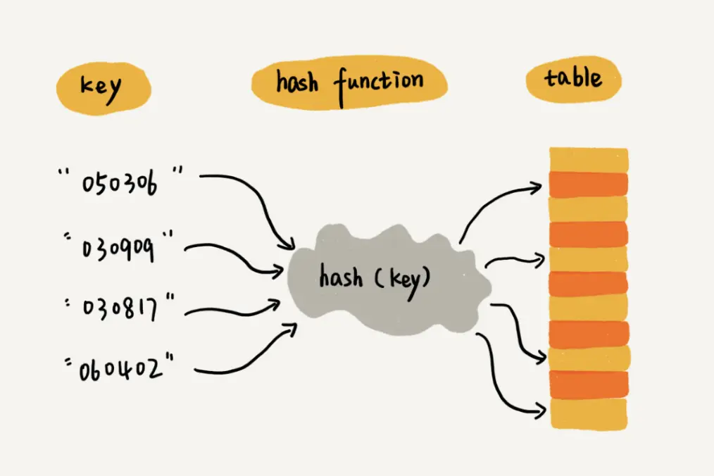 散列表用的就是数组支持按照下标随机访问的时候,时间复杂度是 O(1) 的特性。我们通过散列函数把元素的键值映射为下标,然后将数据存储在数组中对应下标的位置。当我们按照键值查询元素时,我们用同样的散列函数,将键值转化数组下标,从对应的数组下标的位置取数据。