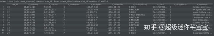 select * from (select row_number() over() as row_id,* from orders_delta)t whererow_id between 10 and 20;