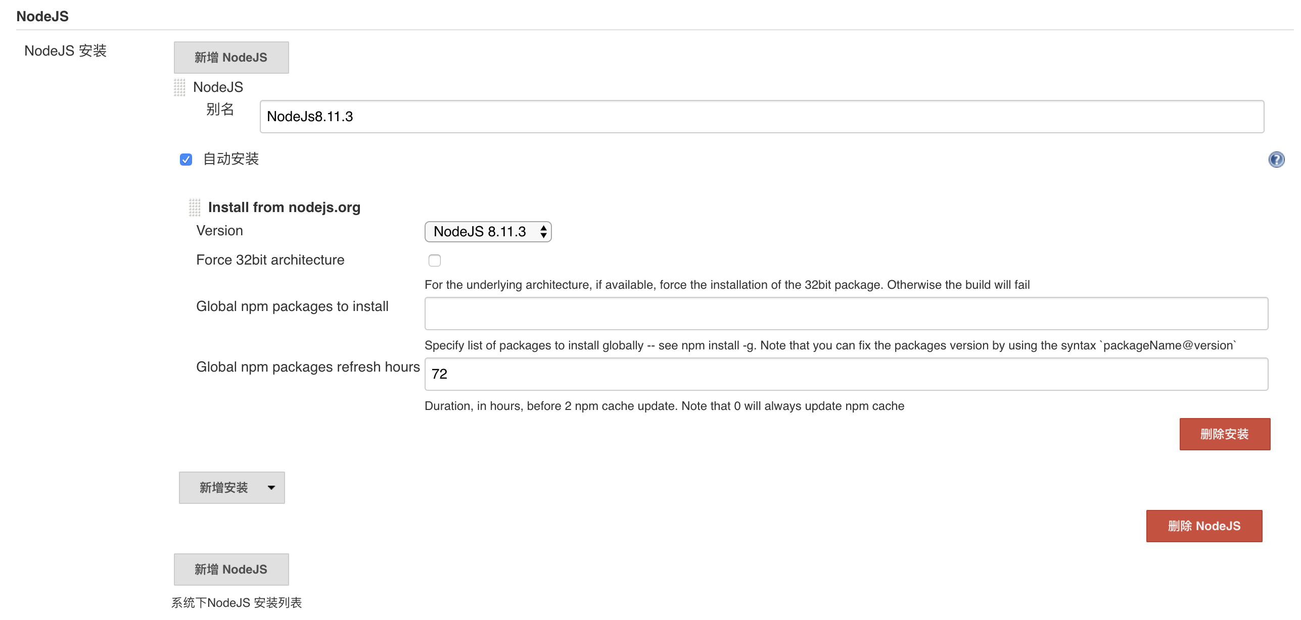 - NodeJS Plugin(用于安装node环境,可选node版本)