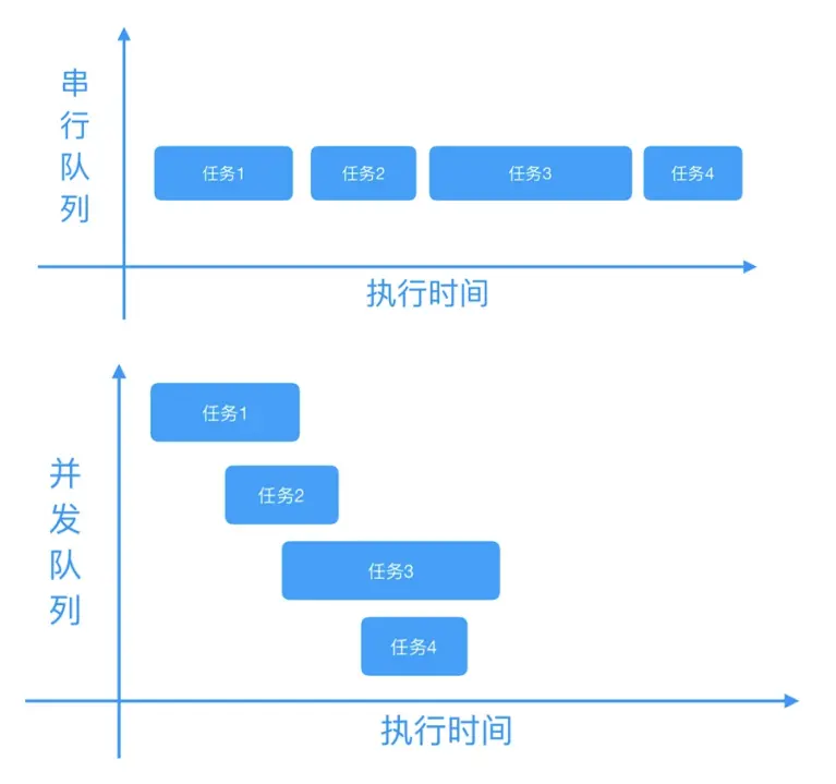 Dispatch Queue是用来执行任务的队列,是GCD中最基本的元素之一。图示:
