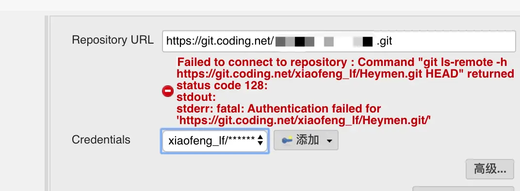 记录一次jenkins仓库地址更换的操作 一叶知秋 2020-02-09 1,056 阅读1分钟 今天突然发现coding.net的仓库地址要升级了,要把仓库地址git.coding.net改成e.coding.net, 然后之前的凭据(xiaofeng_lf)连接不上了,如下图: 对于这次jenkins的改动,其实没有涉及上面的git remote set-url orign .. 可能不是像本机的代码仓库(工作空间)这种概念吧,,然后就重新使用了命令: ssh-keygen -t rsa 重新生成了密钥。 然后把公钥添加到coding.net上,然后用私钥在Jenkins上创建了一个用户: 然后,将项目中的连接用户置换成这个root: