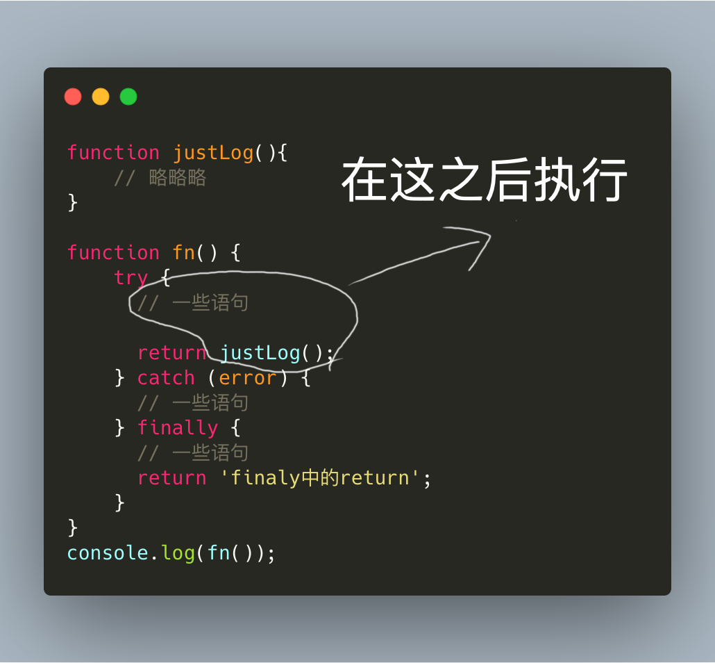 return 'finaly中的return'; // <=== 多了这么一句