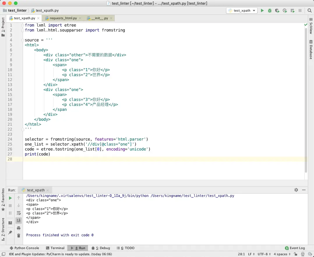 所以,requests_html库本质上还是使用 lxml 来执行 XPath 的!