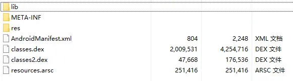 实际需要运行的为dex,即java代码,以及资源文件res,以及so库