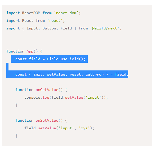 console.log(this.field.getValue('name'));