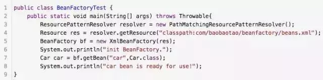 XmlBeanFactory 通过 Resource 装载 Spring 配置信息并启动 IoC 容器,然后就可以通过 BeanFactory#getBean(beanName)方法从 IoC 容器中获取 Bean 了。通过 BeanFactory 启动IoC 容器时,并不会初始化配置文件中定义的 Bean,初始化动作发生在第一个调用时。