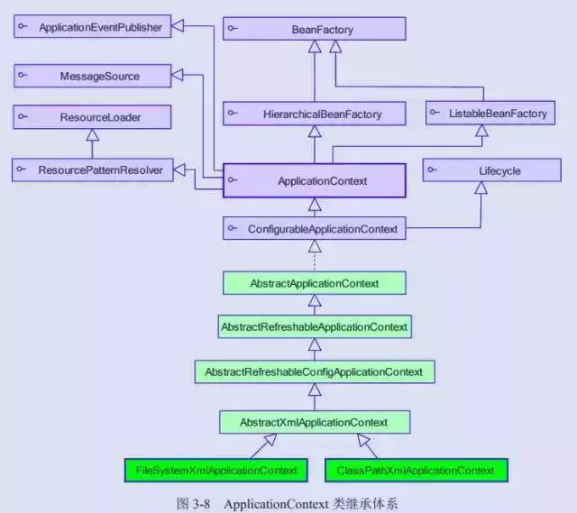 ApplicationContext 继承了 HierarchicalBeanFactory 和 ListableBeanFactory 接口,在此基础上,还通过多个其他的接口扩展了 BeanFactory 的功能: