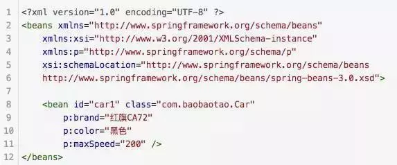 使用 Spring 配置文件为 Car 提供配置信息:beans.xml: