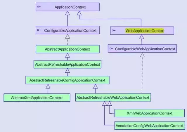 ConfigurableApplicationContext 扩展于 ApplicationContext,它新增加了两个主要的方法: refresh()和 close(),让 ApplicationContext 具有启动、刷新和关闭应用上下文的能力。在应用上下文关闭的情况下调用 refresh()即可启动应用上下文,在已经启动的状态下,调用 refresh()则清除缓存并重新装载配置信息,而调用close()则可关闭应用上下文。这些接口方法为容器的控制管理带来了便利,但作为开发者,我们并不需要过多关心这些方法。