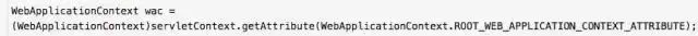 WebApplicationContext 是专门为 Web 应用准备的,它允许从相对于 Web 根目录的路径中装载配置文件完成初始化工作。从WebApplicationContext 中可以获得 ServletContext 的引用,整个 Web 应用上下文对象将作为属性放置到 ServletContext 中,以便 Web 应用环境可以访问 Spring 应用上下文。 WebApplicationContext 定义了一个常量ROOT_WEB_APPLICATION_CONTEXT_ATTRIBUTE,在上下文启动时, WebApplicationContext 实例即以此为键放置在 ServletContext 的属性列表中,因此我们可以直接通过以下语句从 Web 容器中获取WebApplicationContext: