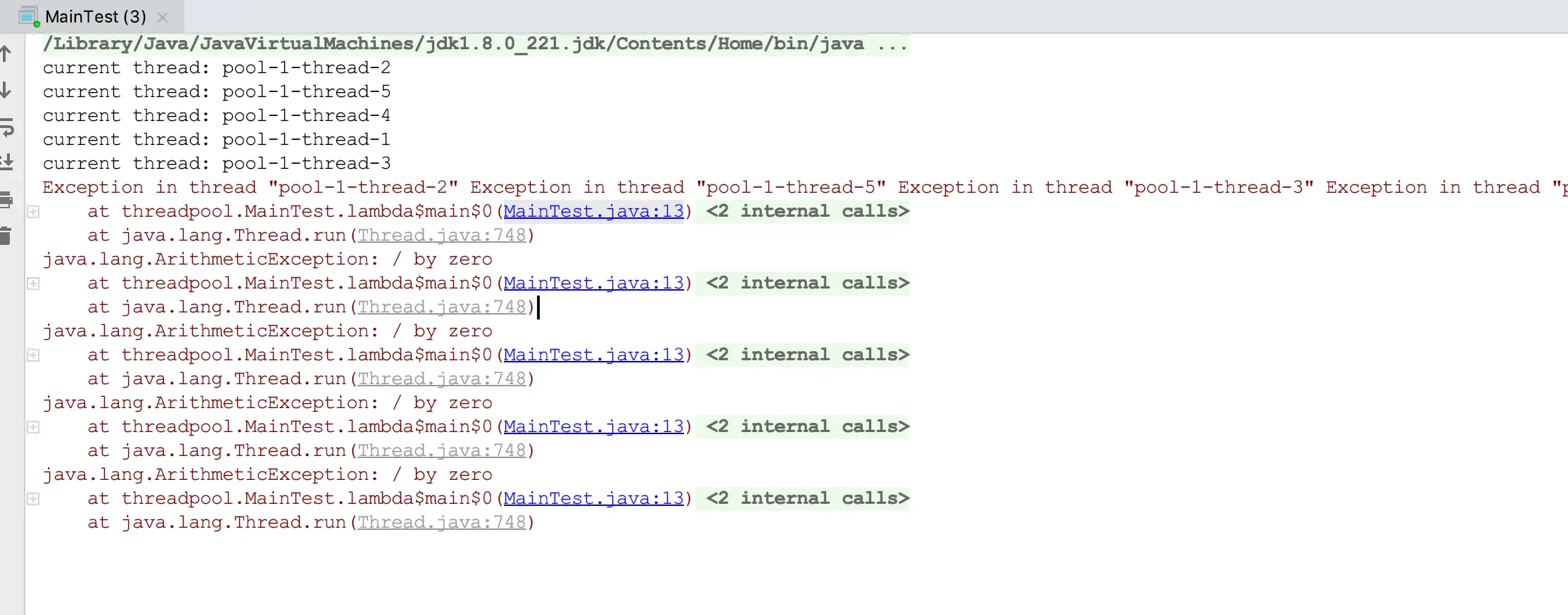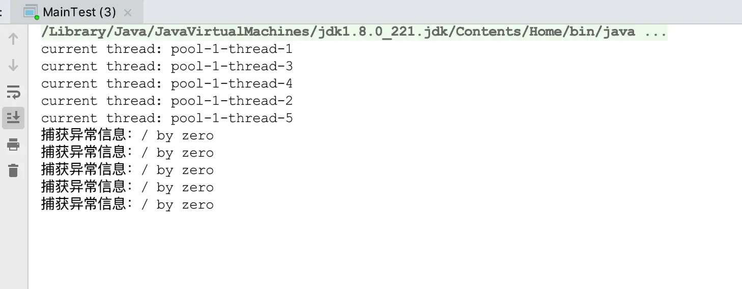 想知道线程池对异常的默认处理方式,我们先来看看下面的测试代码: