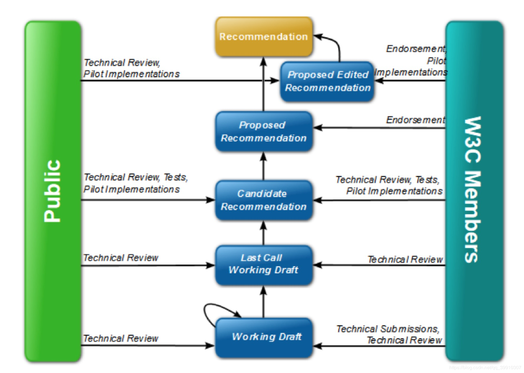 当最终工作草案阶段结束,且问题都得到解决后,将进入候选推荐标准(Candidate Recommendation)阶段。