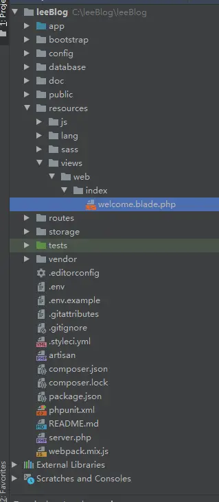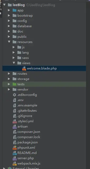 laravel的视图文件默认是放在resources/views目录下面,如下图所示: