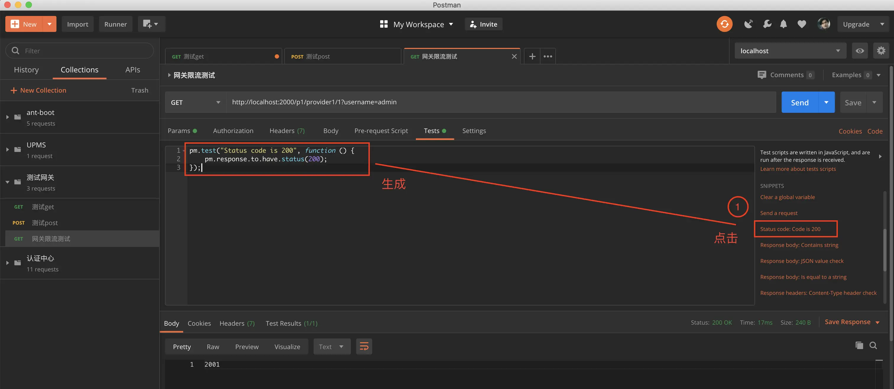 这里我们用 postman 进行测试