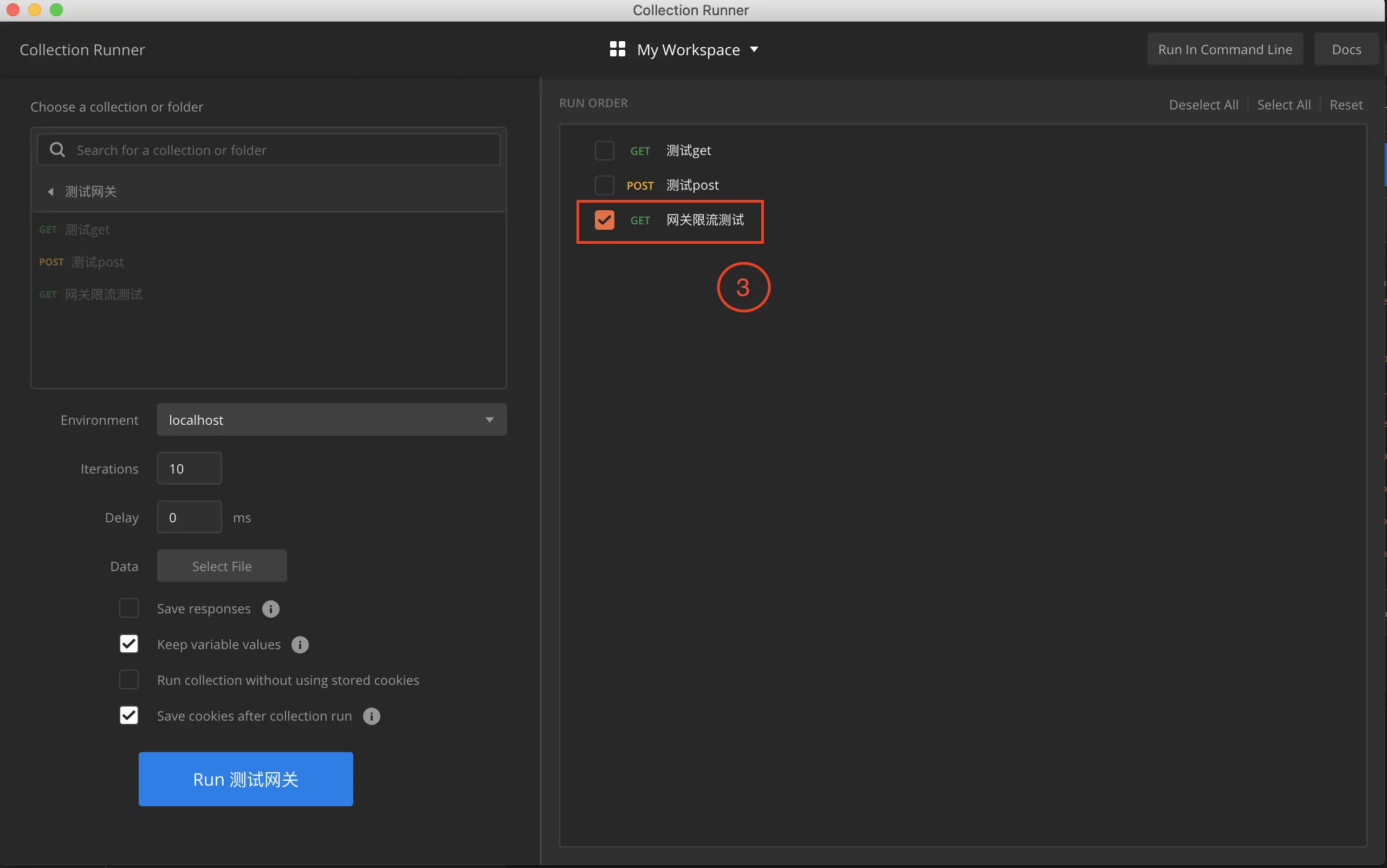 - key-resolver,用于限流的键的解析器的 Bean 对象的名字。它使用 SpEL 表达式根据#{@beanName}从 Spring 容器中获取 Bean 对象。