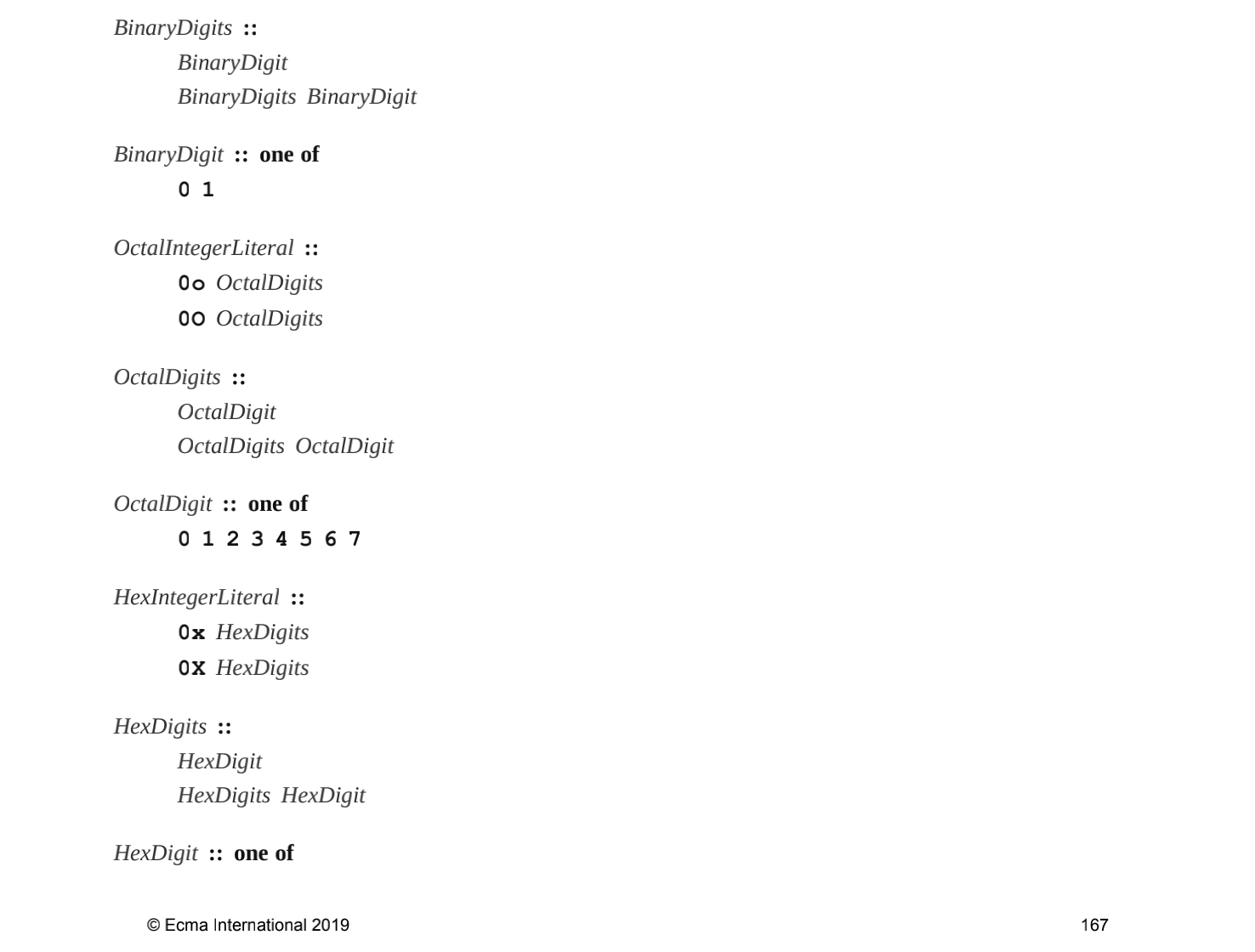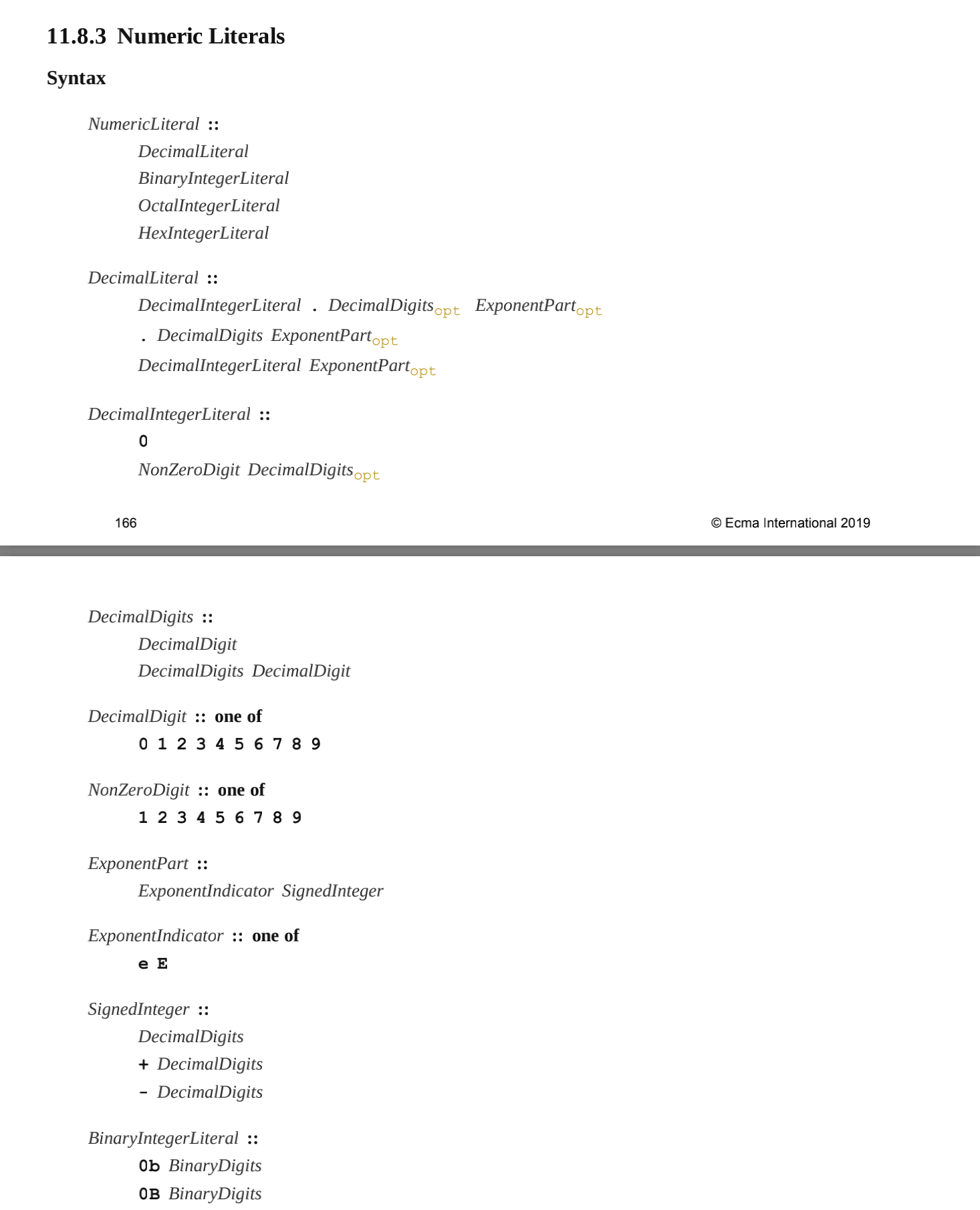 关于这一点,我们就需要看相关文档啦~ 这是ECMA-262关于数字直接量的语法说明