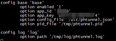 uci配置文件:由于openwrt的uci是常用的配置(不理解uci可参阅其他文档),所以需要一个uci配置文件,该文件通常放在/etc/config目录下,同时我们取名同样为phtunnel,这样就可以使用uci set phtunnel.xx.xx等操作phtunnel的配置了。