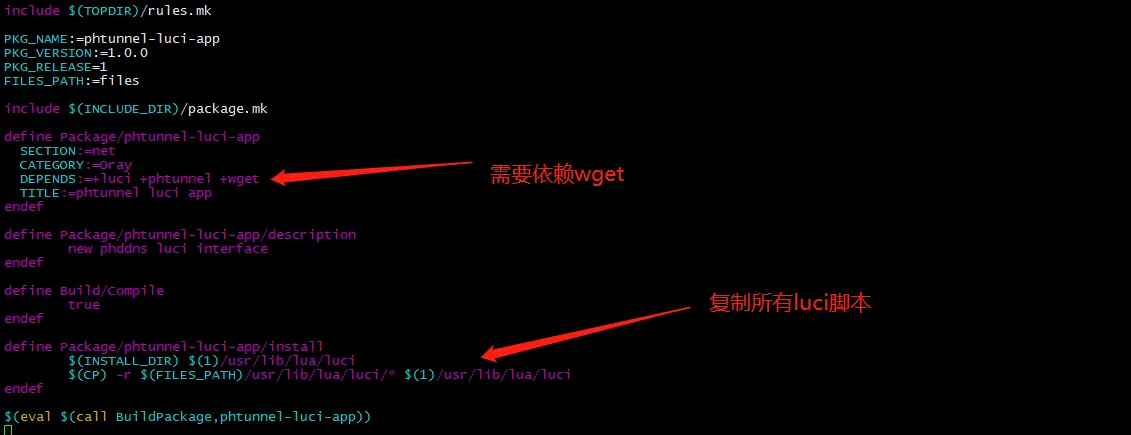 根据目录结构规划,现在来编写组件,由于openwrt的组件是用makefile文件编写。