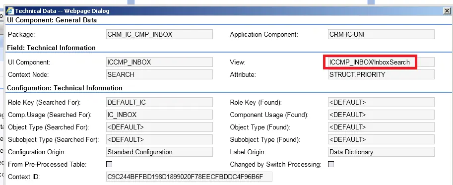 So how can I get the package name CRM_IC_APPL_INBOX? Just click F2 on UI, I can know the view name ICCMP_INBOX/InboxSearch.