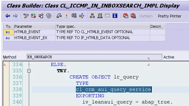 in its event handler for event SEARCH, I can know that the search implementation is actually provided by class CL_CRM_AUI_QUERY_SERVICE.