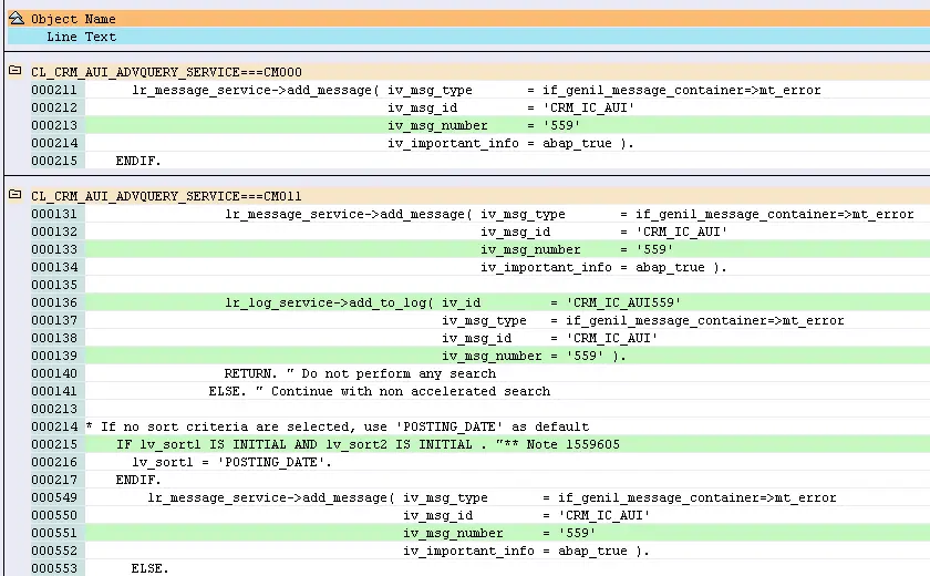 so I try to use report RS_ABAP_SOURCE_SCAN, use 559 as search key, and maintain CRM_IC_APPL_INBOX as package. The report will scan 559 within all ABAP source codes which are stored in that package.