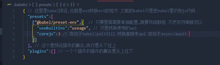 - preset-env是babel预设 是es6转换es5的集合 写一个.babelrc