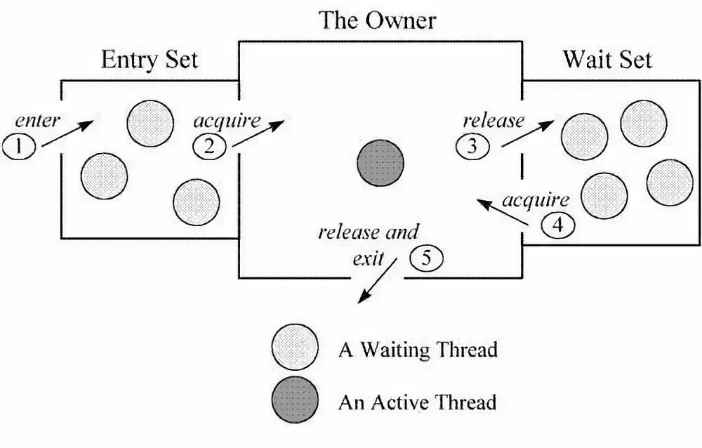 拥有监视者对象的线程可以调用 wait() 进入等待集合(Wait Set),同时释放监视锁,进入等待状态。