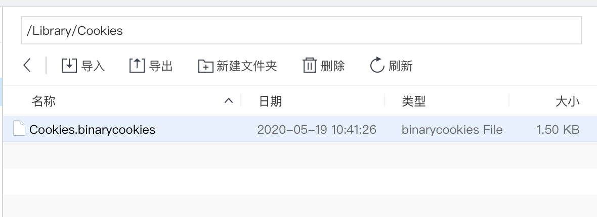 1、app通常会把cookie信息保存在沙盒的 /Library/Cookies 路径下,将其中的Cookies.binarycookies 文件复制到电脑。
