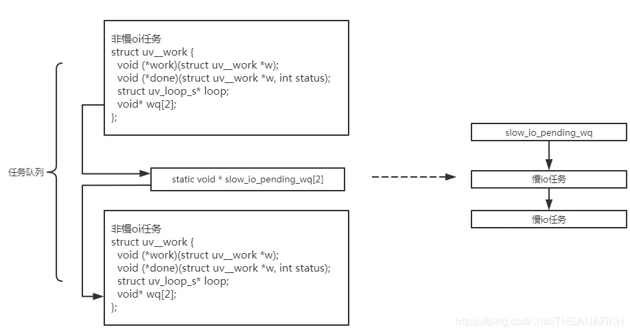 插入慢IO对应的队列,llibuv这个版本把任务分为几种类型,