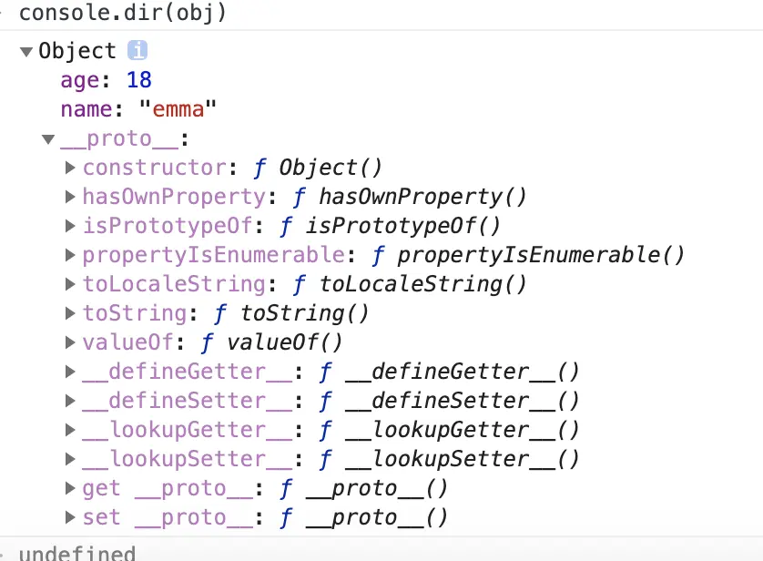 console.dir(obj),obj.__proto__也可以查看对象的原型但是不推荐使用