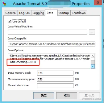 Tomcat的bin目录下,双击“服务名w.exe”,修改Java下Java Options,增加-Dfile.encoding=UTF-8