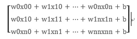 假设X=[x0,x1,…xn],W=[w0,w1…wn] 那么XWT+b=[w0x0+w1x1+…+wnxn+b]