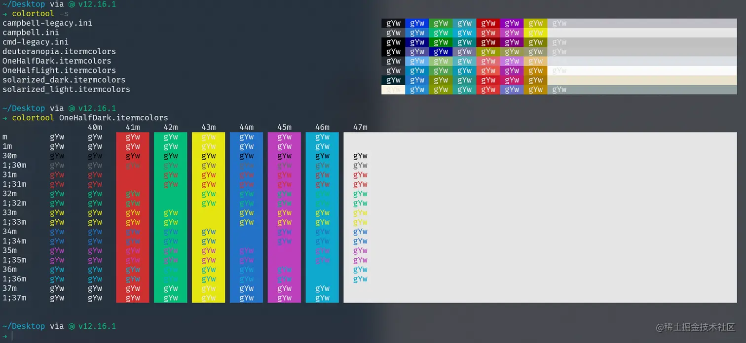 colortoolcolortool -s # 颜色表 colortool OneHalfDark.itermcolors # colortools后面跟主题名字就行