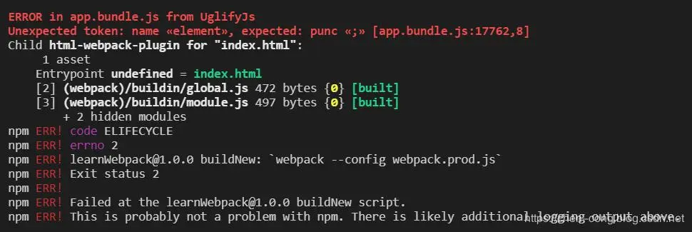3. ERROR in app.bundle.js from UglifyJs Unexpected token: name «element», expected: punc «;» 的错误处理