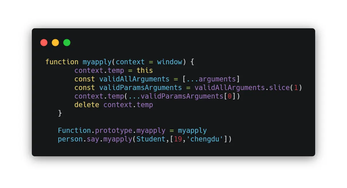 person.say.apply(Student,[19,'chengdu']) // Student 19 chengdu
