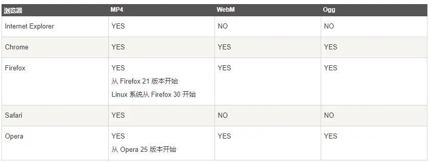 当前 video 元素支持三种视频格式: 尽量使用 mp4格式