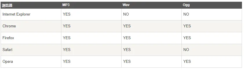 当前 audio 元素支持三种视频格式: 尽量使用 mp3格式