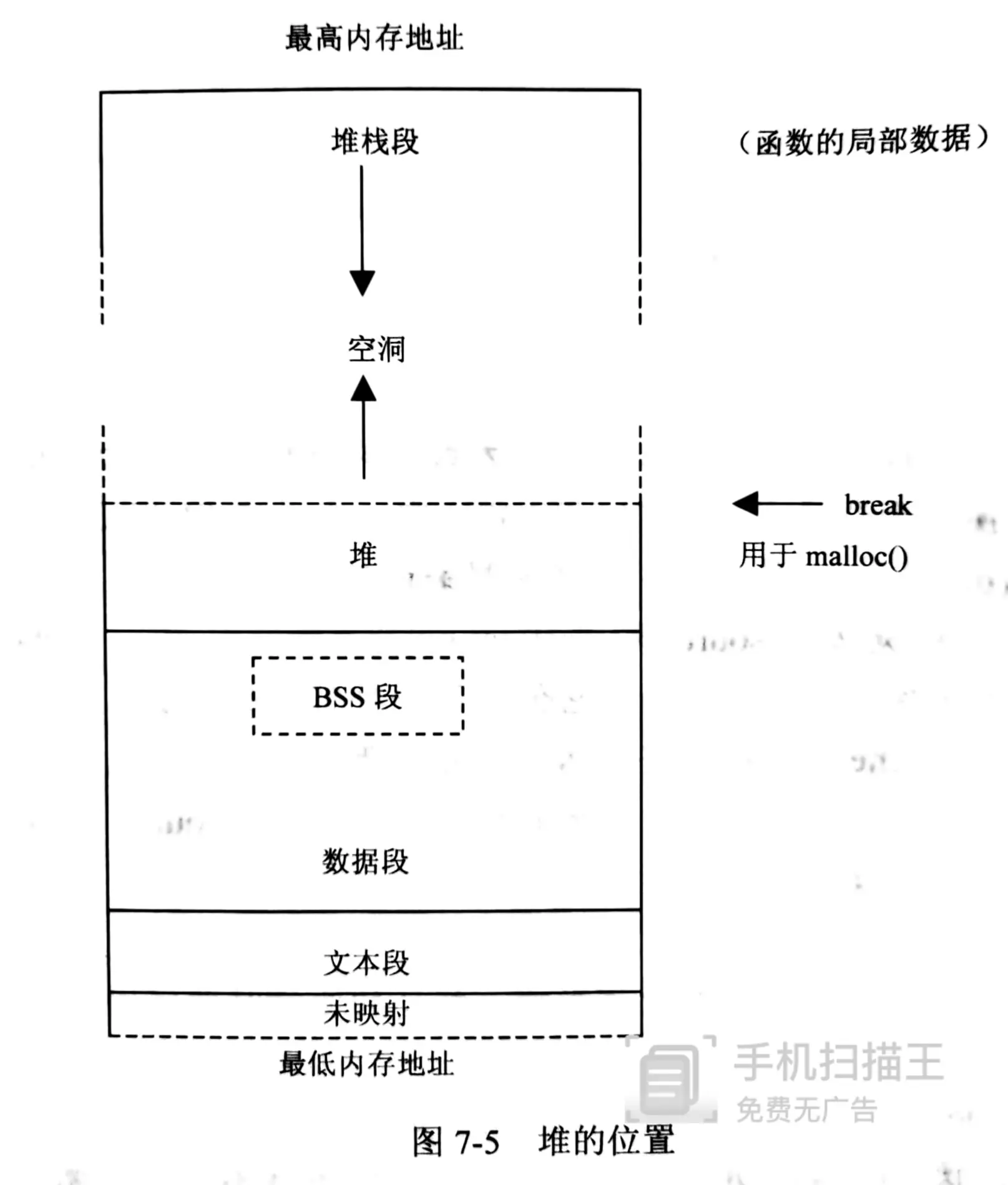 在本书的上一章讲过关于堆栈段的描述,而数据段和堆却出现在这一章,我也没有搞懂作者为何要这样分配。