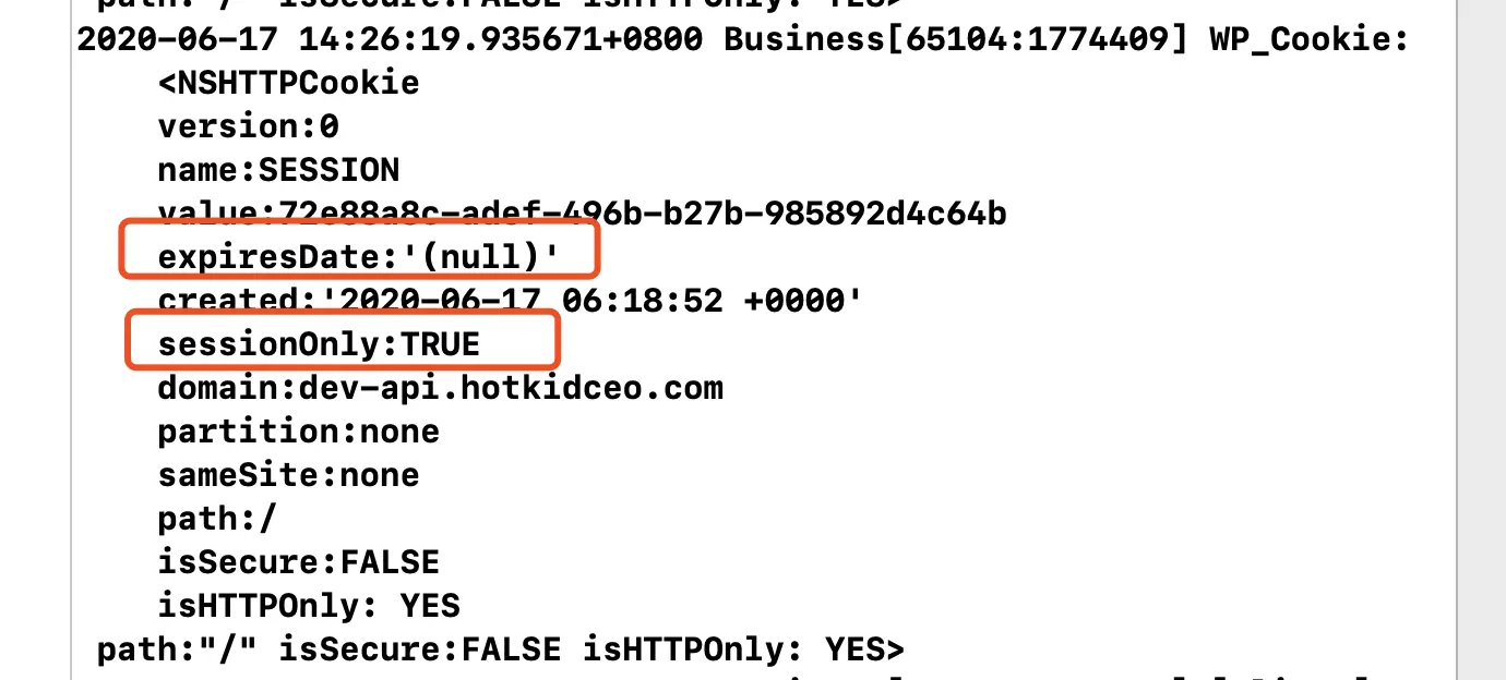 cookie分会话cookie和持久cookie,如果是会话cookie关闭浏览器(客户端),该cookie就删除了.如果是持久cookie的话,在关闭浏览器(客户端),cookie会默认存储到本地. 会话cookie和持久cookie区别在于,有没有设置expiresDate 和 sessionOnly , 如果设置了expireDate的值 , sessionOnly 值为FALE 那么kill掉程序,cookie会默认保存到沙盒中.
