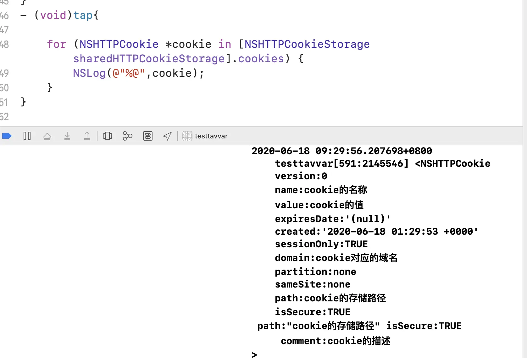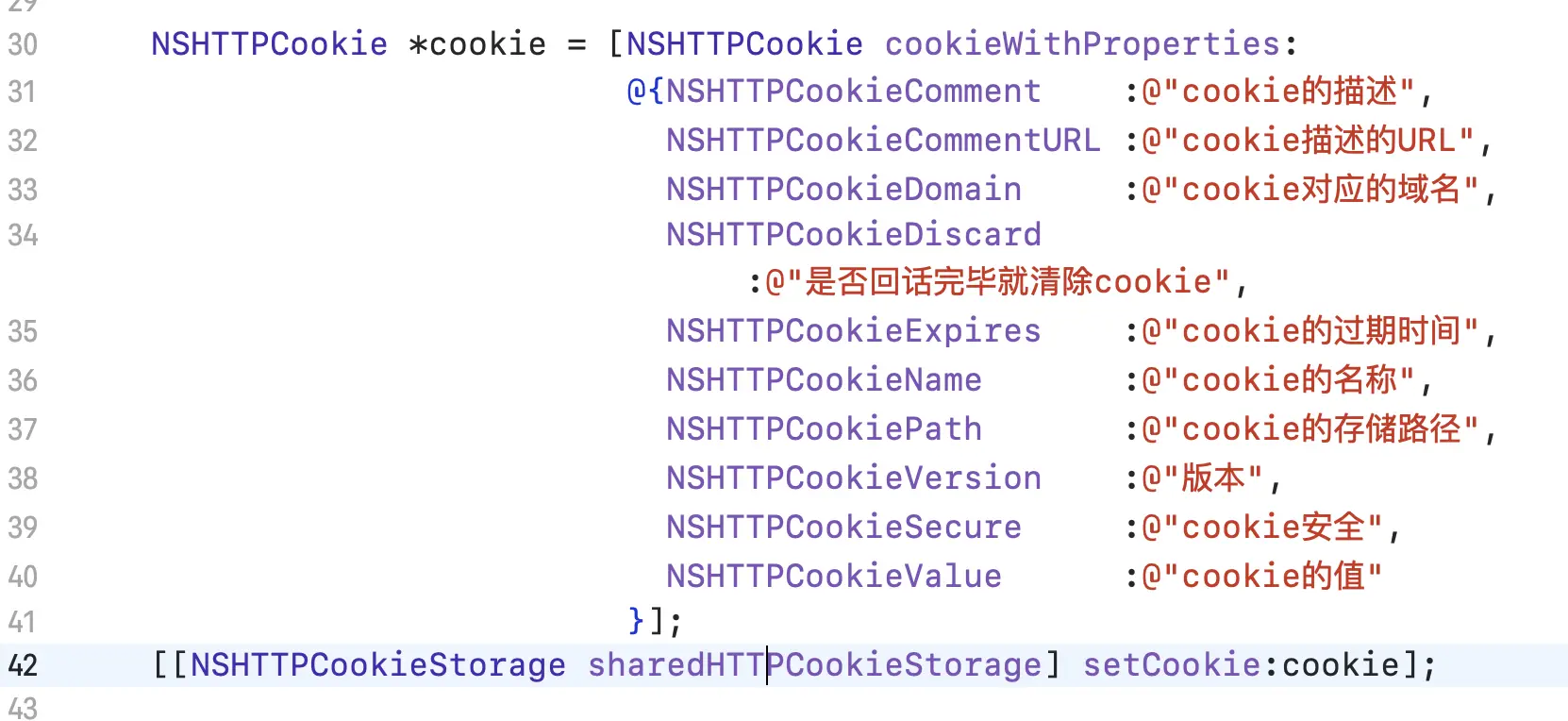 2).NSHTTPCookie 具体的HTTP请求Cookie数据对象