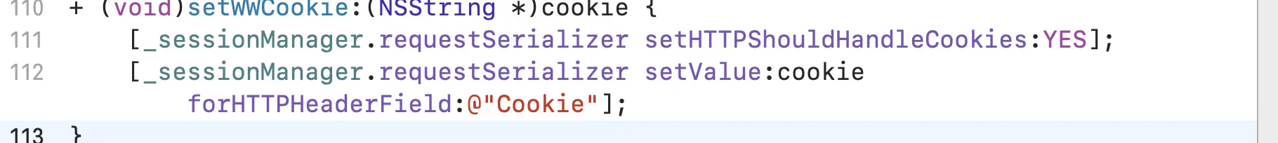 如果HTTPShouldHandkeCookies 设置为YES,代表自动AFNetworking自动管理cookie, 就是后台返回cookie,会自动设置到NSHTTPCookieStorage这个类里面 ,让每次请求的时候回带上cookie. (一般我们都是自动管理)