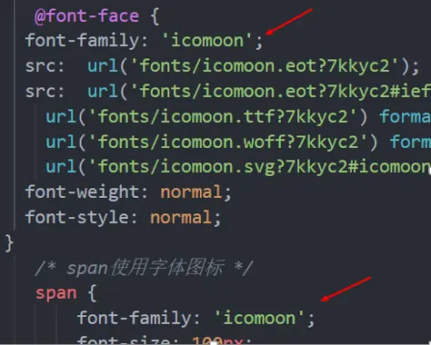 注意:务必保证 这个字体和上面@font-face里面的字体保持一致
