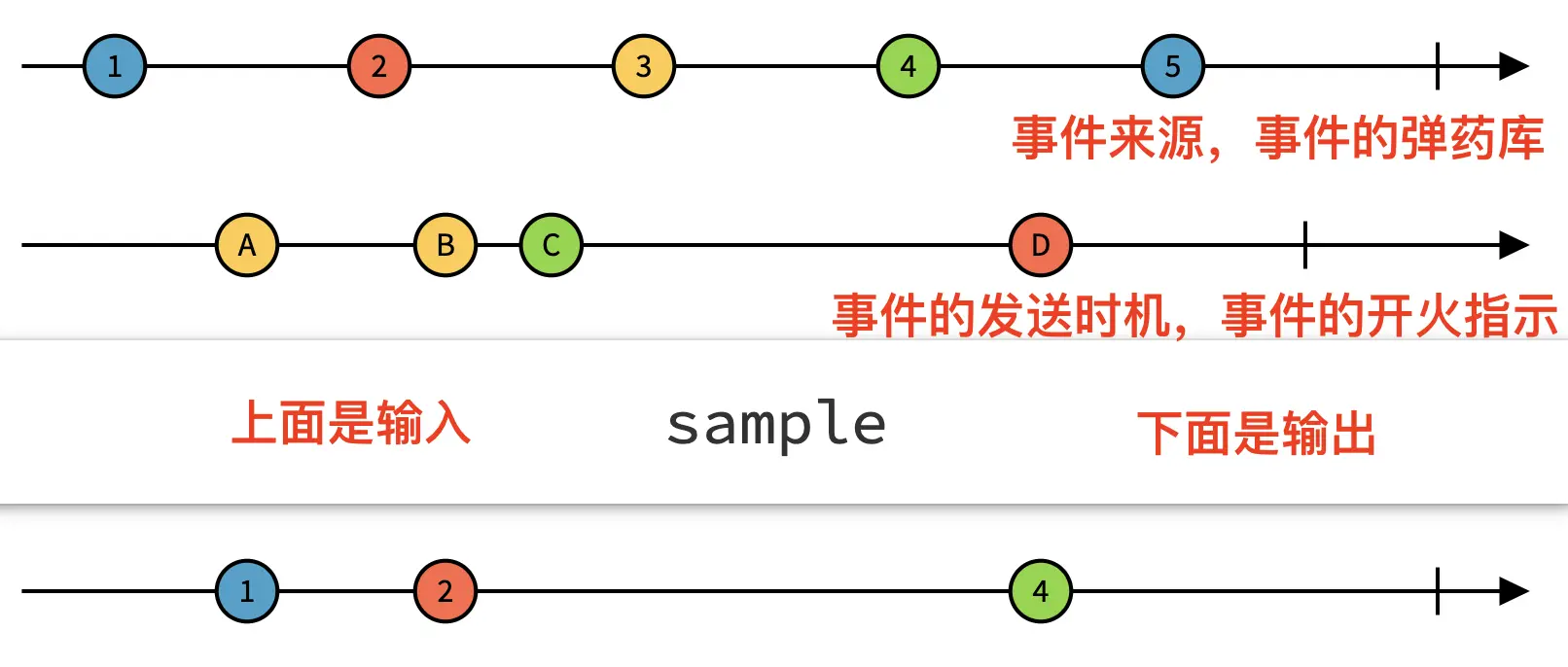 另外一个事件流,决定前一个事件流的处理时机 ( 前一个事件流,只处理需要的,无用的事件抛弃 )