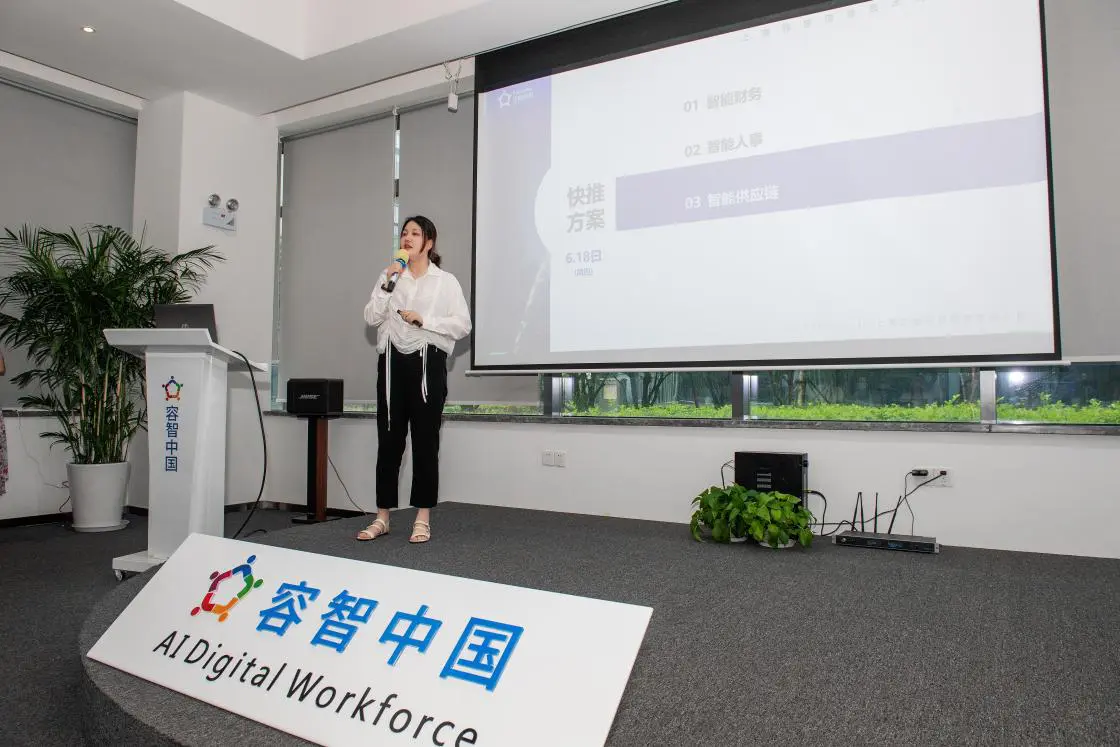 在众多合作伙伴的见证下正式揭牌容智的三大中心,分别是数字化生产力展示中心、咨询及技术培训中心和全国交付及解决方案中心。