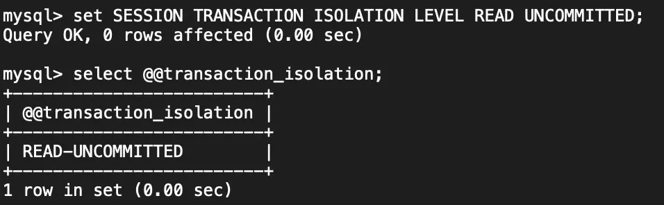 set SESSION TRANSACTION ISOLATION LEVEL READ UNCOMMITTED;