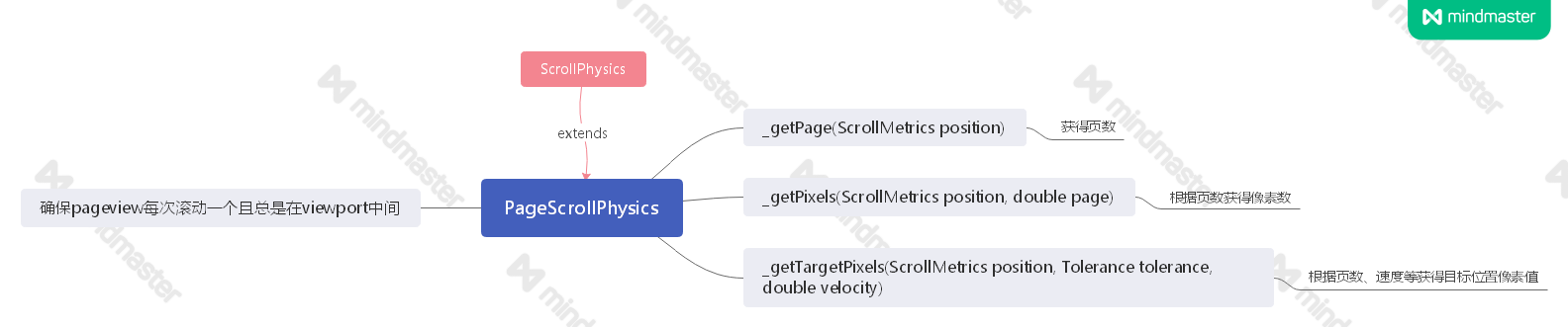PageScrollPhysics 继承自ScrollPhysics,用来决定滚动时的物理特性。如果你对pageview、listview等等的滚动效果不满意,就可以从这里入手,定义自己的physics。