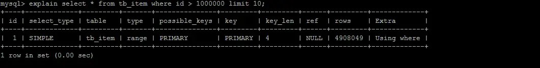 该方案适用于主键自增的表,可以把Limit 查询转换成某个位置的查询 。