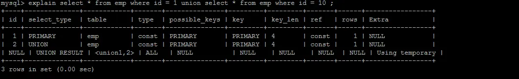 UNION 语句的 ref 值为 const,OR 语句的 type 值为 null,const 表示是常量值引用,非常快