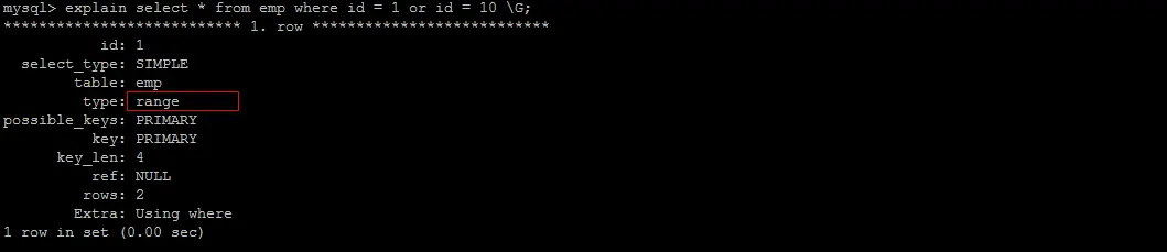 UNION 语句的 type 值为 ref,OR 语句的 type 值为 range,可以看到这是一个很明显的差距